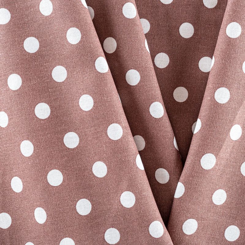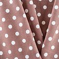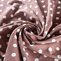 Льняная костюмно-плательная ткань кофейного оттенка в белый горох. Ткань прочная и плотная, с выразительной матовой рельефной поверхностью и полотняным переплетением, отлично держит форму, комфортная в изделии. Стильный вариант для летних пальто, кардиганов, платьев, сарафанов, юбок, жакетов, брюк или шорт.