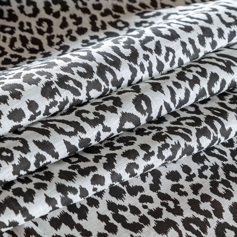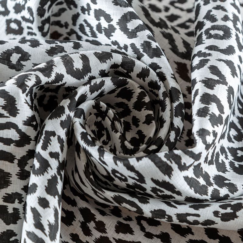 Итальянский плательно-рубашечный лен средней плотности с монохромным анималистическим принтом. Ткань прочная, имеет матовую рельефную поверхность и полотняное переплетение, отлично держит форму, пластичная, комфортная в изделии. Отлично подойдет для пошива для летних костюмов, рубашек, туник, платьев, сарафанов, юбок, жакетов, брюк или шорт.