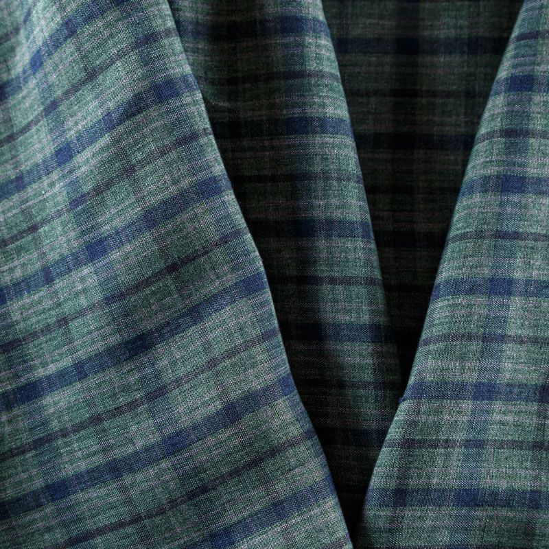 Итальянский костюмно-плательный лен взелено-синюю клеточку. Ткань прочная, имееет на ощупь приятную, гладкую поверхность, а визуально - выраженный рельеф и полотняное переплетение, держит форму, пластичная. Подойдет для пошива костюмов, брюк, шорт, в том числе мужских, юбок, платьев, сарафанов, топов, комбинезонов, жакетов, кардиганов.