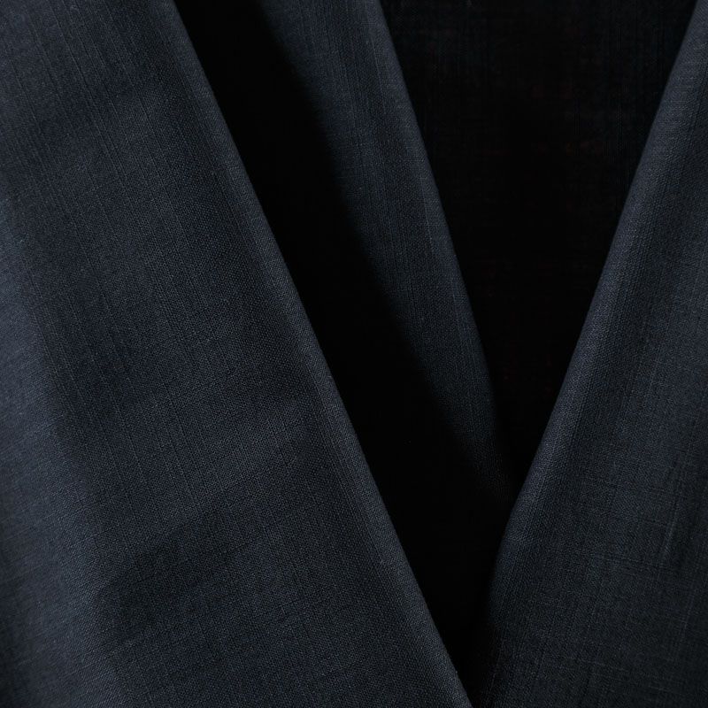 Итальянский плательно-рубашечный лен в черном оттенке. Ткань прочная, имееет на ощупь приятную, гладкую поверхность, а визуально - выраженный рельеф и полотняное переплетение, плачтичная, хорошо драпируется. Подойдет для пошива широких брюк, шорт, рубашек, туники, юбок, платьев, сарафанов, топов, комбинезонов.