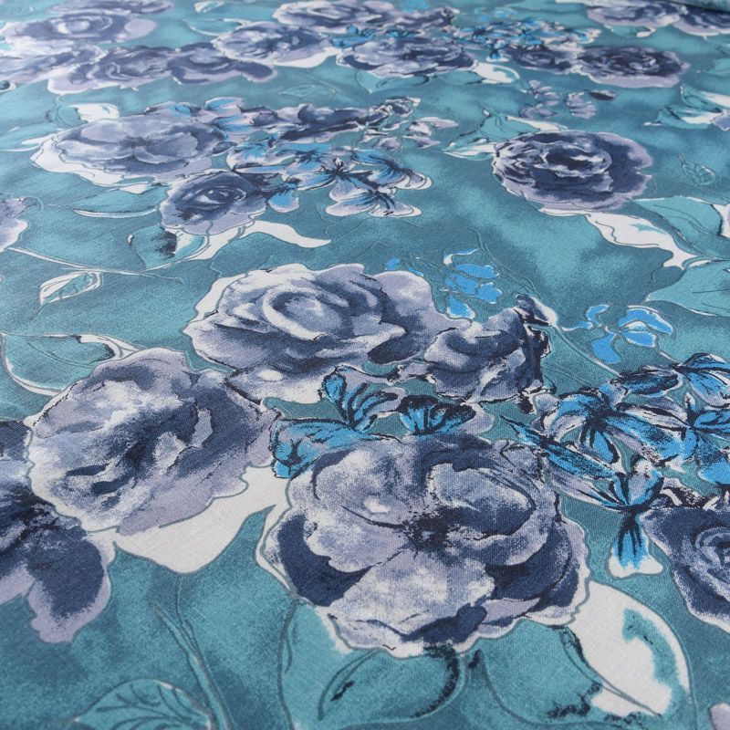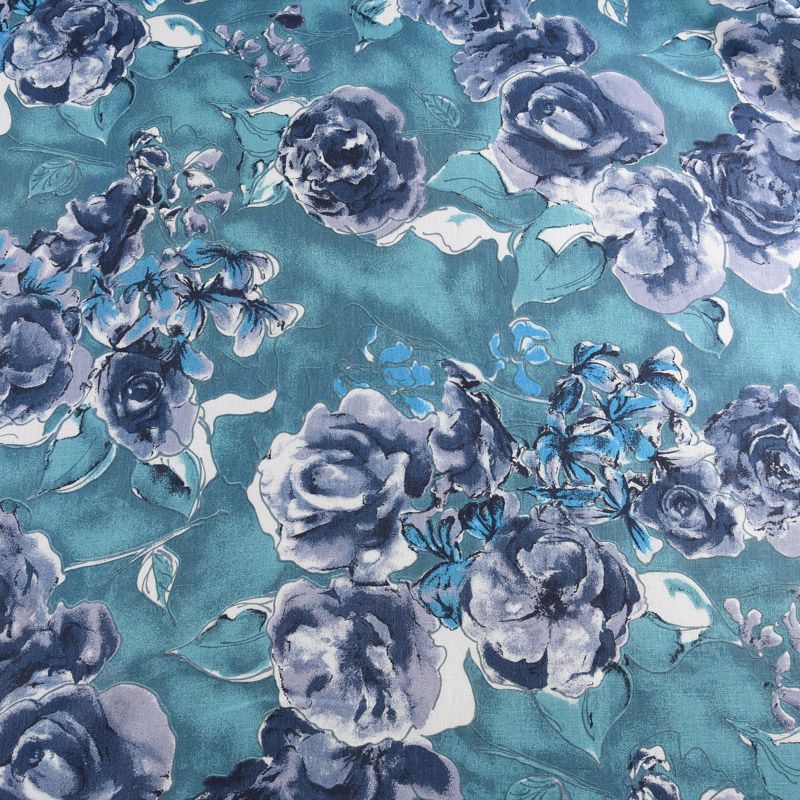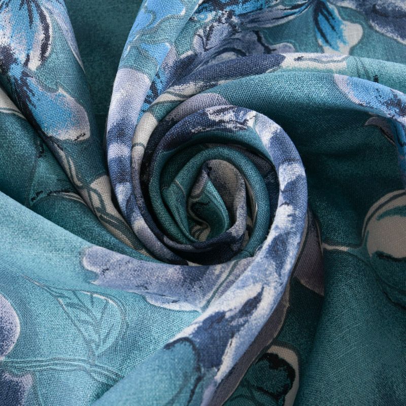 Лен натуральный 035-11767 темно-бирюзовый принтованный в Петрозаводске