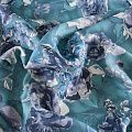 Лен натуральный 035-11767 темно-бирюзовый принтованный