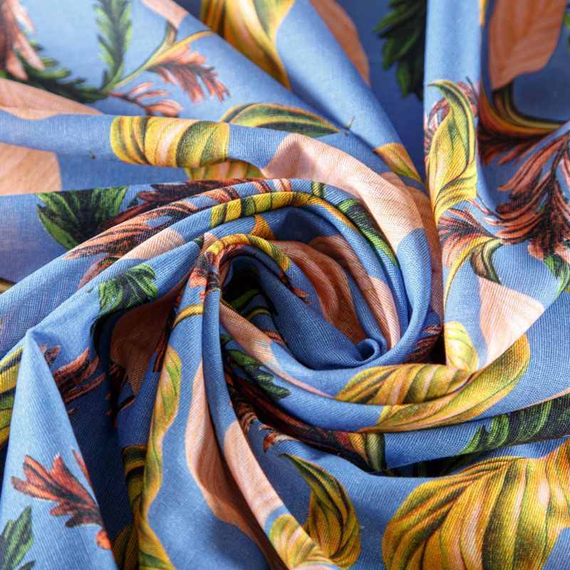 Лен-вискоза 035-07875 голубой принтованный в Петрозаводске