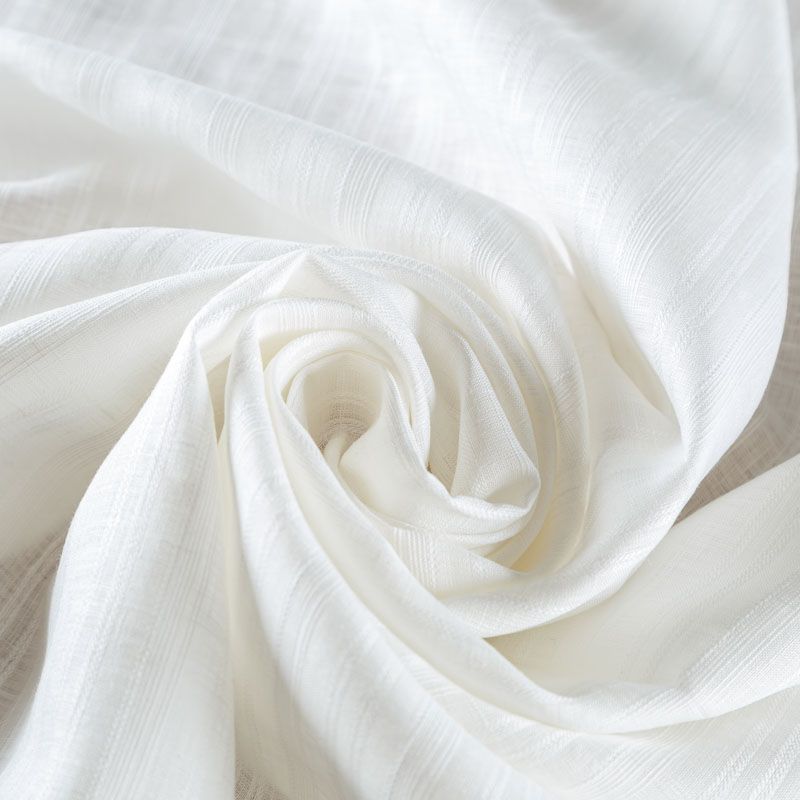Итальянский плательно-рубашечный лен с добавлением вискозы средней плотности с тонкими жаккардовыми полосками по ширине ткани. Ткань прочная, имеет матовую фактурную поверхность и полотняное переплетение, немного просвечивает, отлично держит форму, пластичная, комфортная в изделии. Отлично подойдет для пошива для летних костюмов, рубашек, туник, платьев, сарафанов, юбок, жакетов, брюк или шорт.