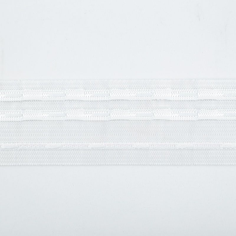 Шторная лента прозрачная для тюлей и портьерных тканей с карандашной сборкой. Сокращение - 1:1,5, раппорт - 4,5 см, 2 ряда непрозрачных белых кармашков, крепление - крючки.