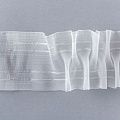 Шторная лента полностью прозрачная для тюлей и легких портьерных тканей с вафельной сборкой. Сокращение - 1:2,5, раппорт - 28 см, 2 ряда кармашков, крепление - крючки.