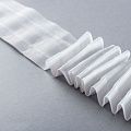 Шторная лента мягкая, не прозрачная для плотных тюлевых полотен и портьерных тканей c карандашной складкой. Сокращение - регулируемое, произвольное, 2 ряда белых текстильных кармашков, стягивается на 4 нитки, крепление - крючки.