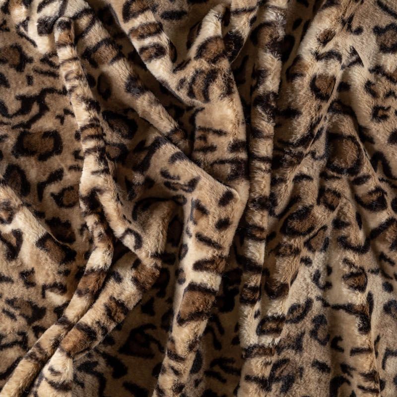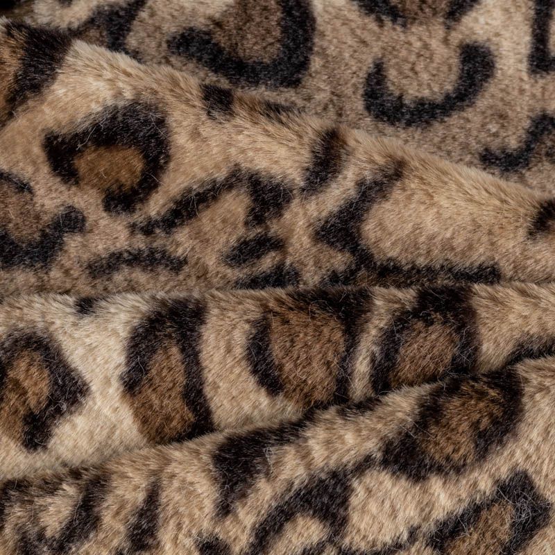 Мех с низким ворсом, имитирующий мутон на синтетической основе. Мягкий, плотный, пластичный. Ворс имеет сдержанный блеск и направление. Принт леопардовый, естественных оттенков. Идеально подойдет для пошива шубки, мехового пальто или отделки.