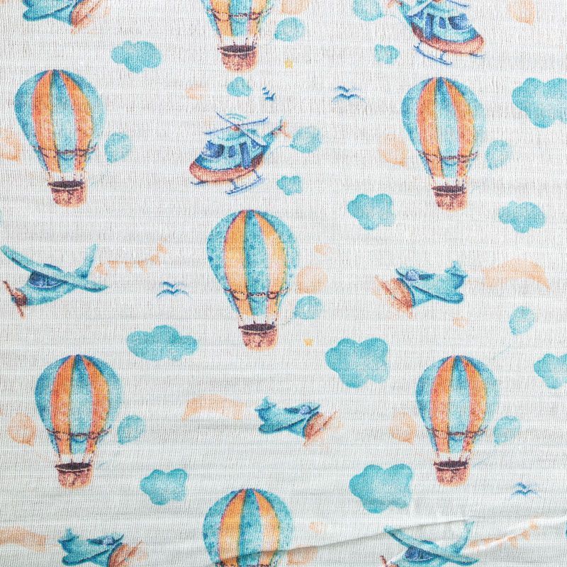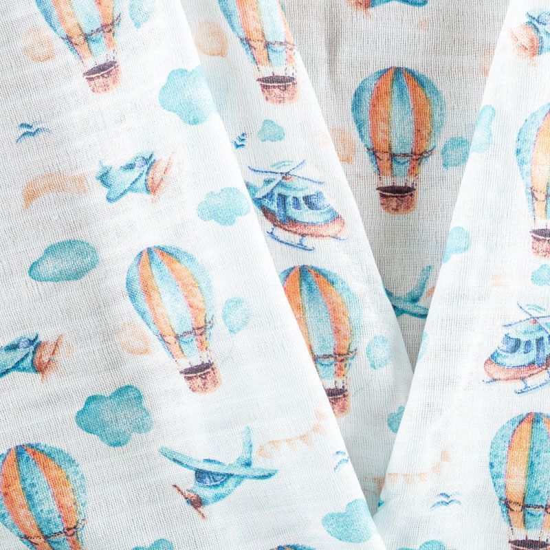 Хлопковый муслин полотняного переплетения, в котором нити утка и основы перекрывают друг друга на больших промежутках, поэтому ткань очень мягкая, легкая, частично прозрачная. Муслин используется для пошива подгузников, пелёнок, комплектов постельного белья для взрослых и детей, занавесок и пологов для детских кроваток, а также одежды.