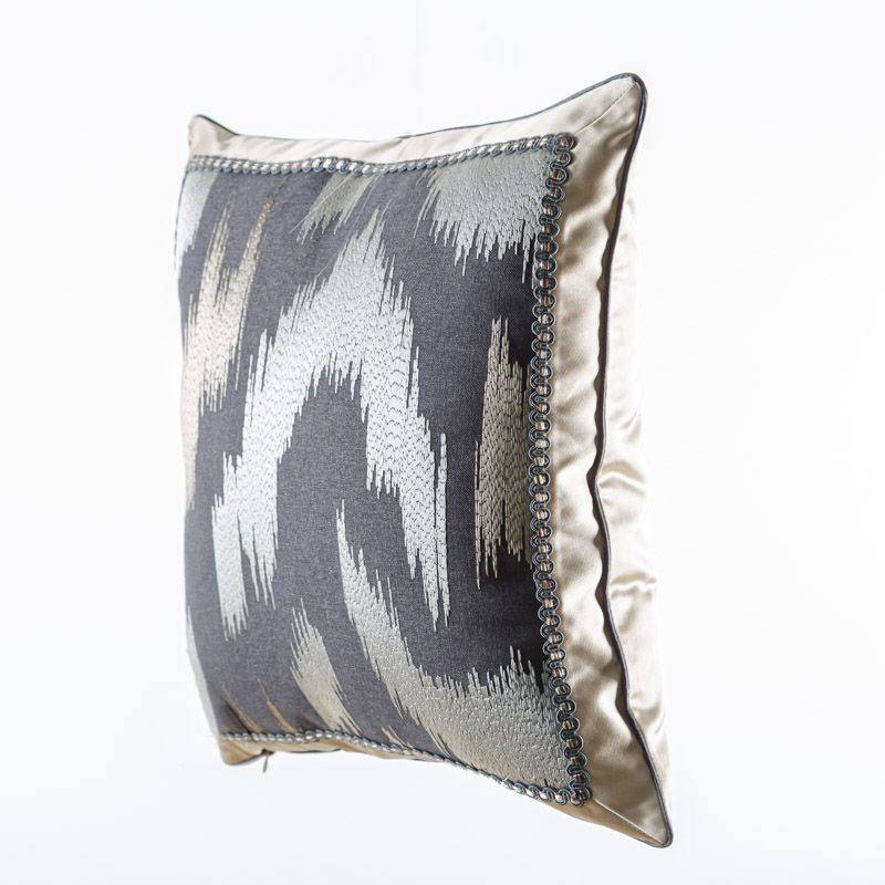 Оригинальная дизайнерская наволочка на подушку 45х45 см. Выполнена из сатина и жаккарда и дкорирована тесьмой и круглым кантом. Потайная молния расположена в нижнем шве. Декоративные подушки сделают акцет на цветовой гамме Вашего помещения, подчеркнут особенности интерьерного стиля или тематику оформления. Внимание! Подушка-вкладыш или синтепон приобретаются отдельно.