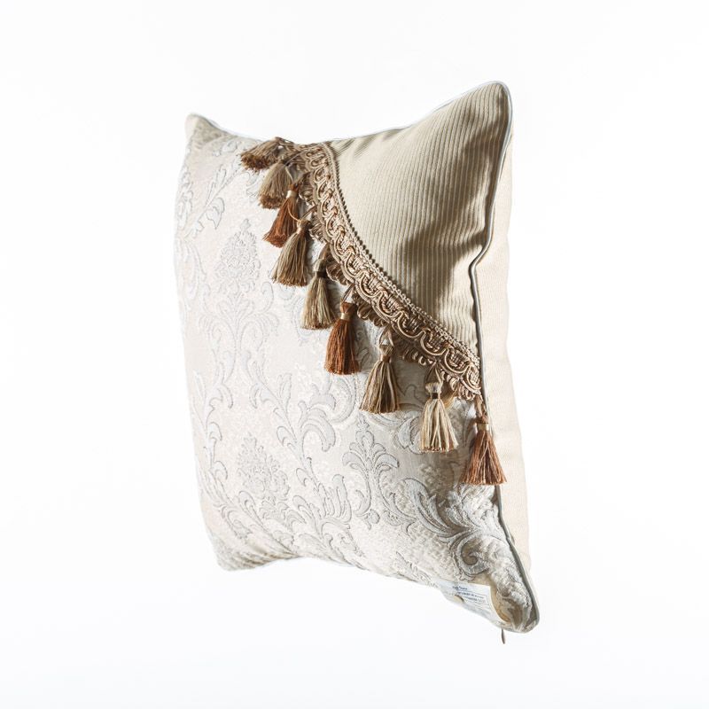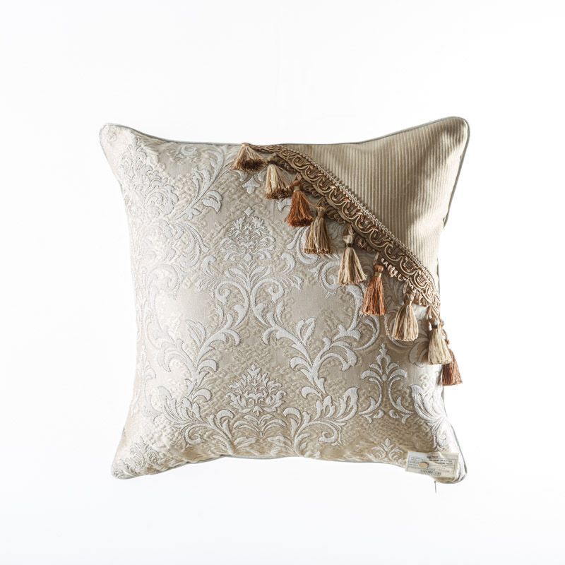 Оригинальная дизайнерская наволочка на подушку 45х45 см. Выполнена из жаккарда и декорирована круглым кантом и бахромой. Потайная молния расположена в нижнем шве. Декоративные подушки сделают акцет на цветовой гамме Вашего помещения, подчеркнут особенности интерьерного стиля или тематику оформления. Внимание! Подушка-вкладыш или синтепон приобретаются отдельно.