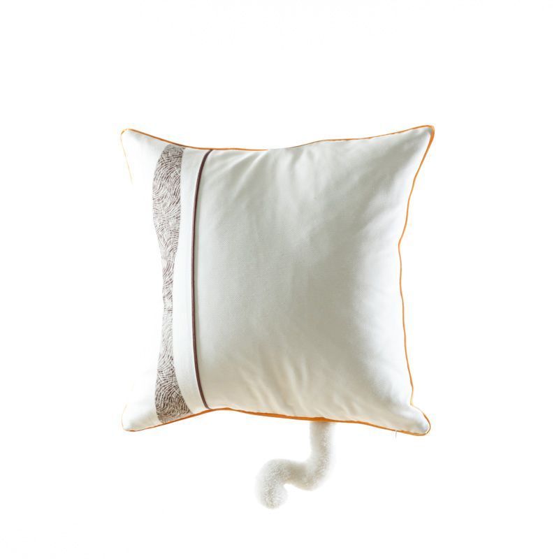 Оригинальная дизайнерская наволочка 45х45 см. Выполнена из смесового принтованного и однотонного материала и декорирована кантом и меховой аппликацией. Потайная молния расположена в нижнем шве. Декоративные подушки сделают акцет на цветовой гамме Вашего помещения, подчеркнут особенности интерьерного стиля или тематику оформления. Внимание! Подушка-вкладыш или синтепон приобретаются отдельно.