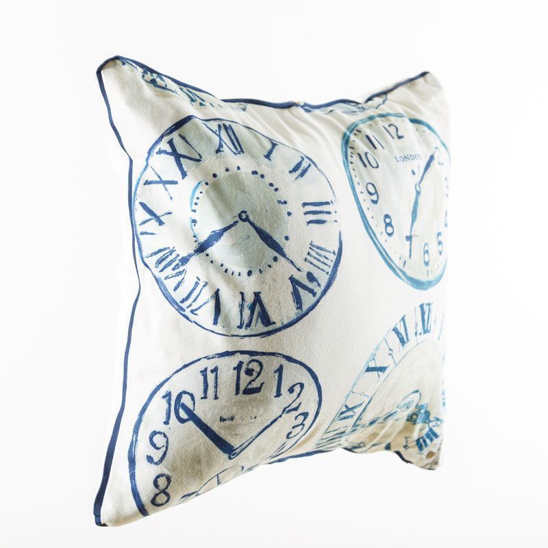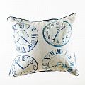Оригинальная дизайнерская наволочка на подушку 50х50 см. Лицевая сторона выполнена из портьерной ткани с принтом "Часы" в сине-голубых оттенках. Обратная сторона - фактурная ткань молочного цвета. Наволочка декорирована репсовым кантом в тон рисунка. Потайная молния расположена в нижнем шве. Декоративные подушки сделают акцет на цветовой гамме Вашего помещения, подчеркнут особенности интерьерного стиля или тематику оформления. Внимание! Подушка-вкладыш приобретается отдельно.
