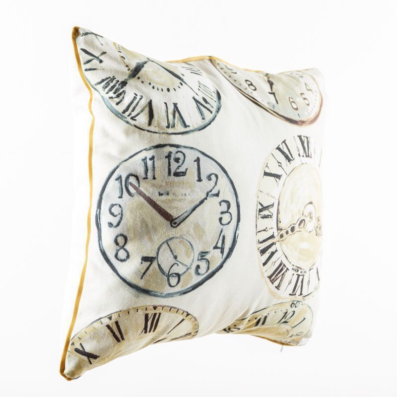 Оригинальная дизайнерская наволочка на подушку 50х50 см. Лицевая сторона выполнена из портьерной ткани с принтом "Часы" в желтых оттенках. Обратная сторона - фактурная ткань молочного цвета. Наволочка декорирована репсовым кантом в тон рисунка. Потайная молния расположена в нижнем шве. Декоративные подушки сделают акцет на цветовой гамме Вашего помещения, подчеркнут особенности интерьерного стиля или тематику оформления. Внимание! Подушка-вкладыш приобретается отдельно.