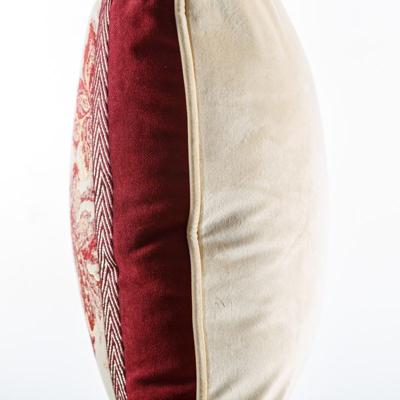 Оригинальная дизайнерская наволочка на подушку 50х50 см. Выполнена из бархата и жаккарда и декорирована тесьмой и кантом. Потайная молния расположена в нижнем шве. Декоративные подушки сделают акцет на цветовой гамме Вашего помещения, подчеркнут особенности интерьерного стиля или тематику оформления. Внимание! Подушка-вкладыш или синтепон приобретаются отдельно.