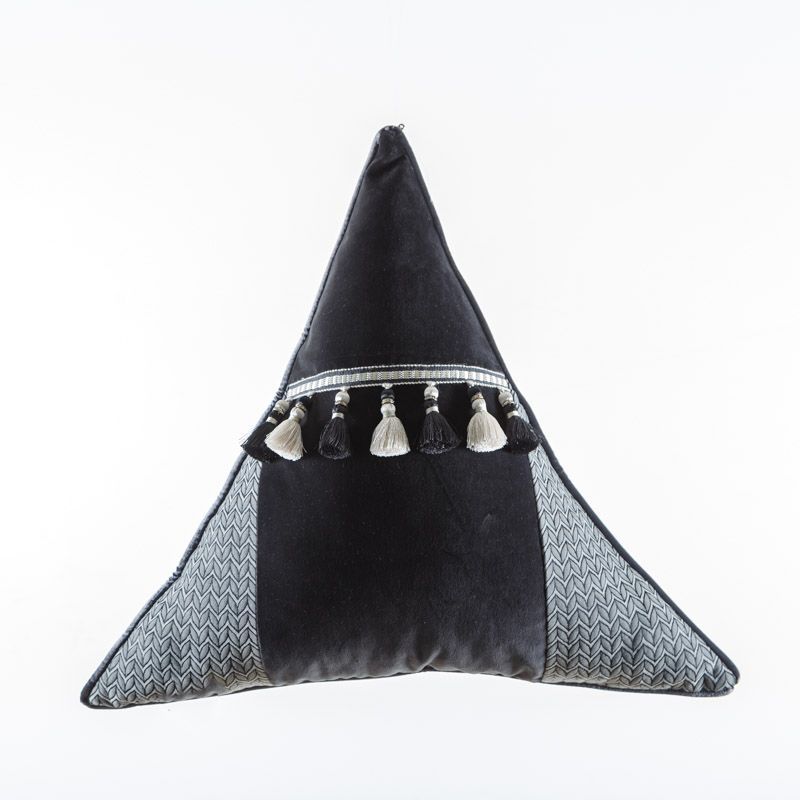 Оригинальная треугольная дизайнерская наволочка 50х50х50 см. Выполнена из жаккарда и бархата и декорирована бахромой и кантом. Потайная молния расположена в нижнем шве. Декоративные подушки сделают акцет на цветовой гамме Вашего помещения, подчеркнут особенности интерьерного стиля или тематику оформления. Внимание! Подушка-вкладыш или синтепон приобретаются отдельно.