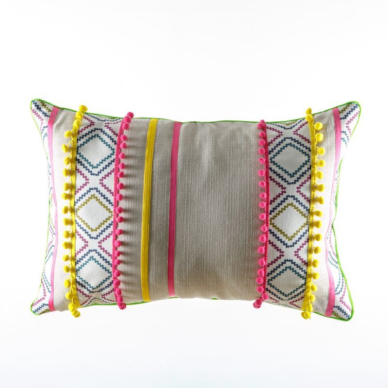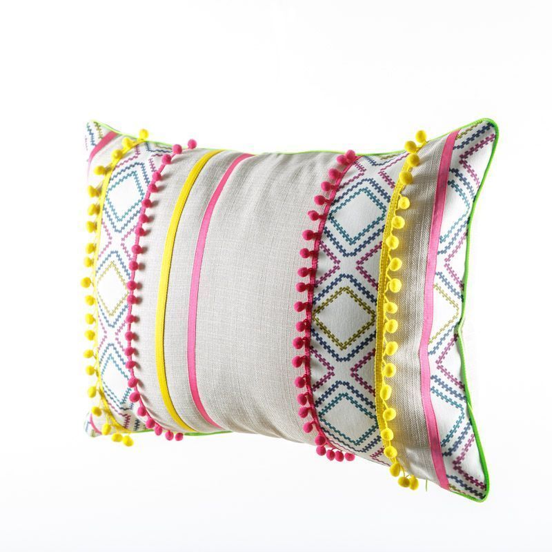 Оригинальная дизайнерская наволочка на подушку 60х40 см. Декорирована контрастым кантом и тесьмой с помпонами. Потайная молния расположена в нижнем шве. Декоративные подушки сделают акцет на цветовой гамме Вашего помещения, подчеркнут особенности интерьерного стиля или тематику оформления. Внимание! Подушка-вкладыш или синтепон приобретаются отдельно.