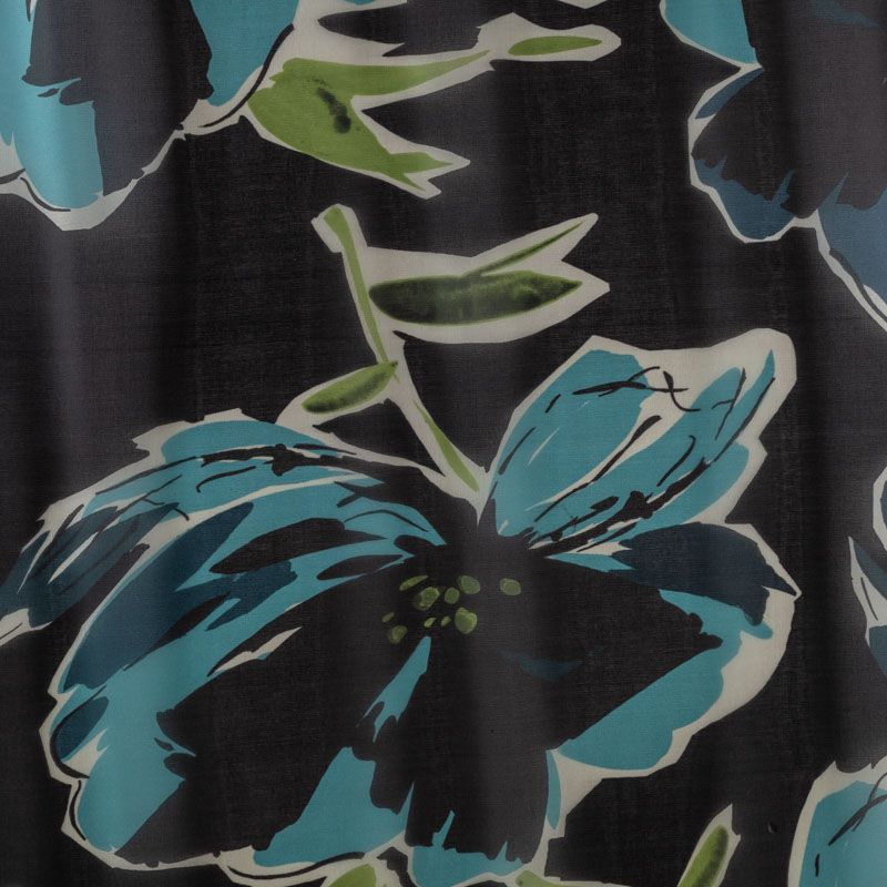 Шелковая органза с крупным флористическим принтом на черном фоне. Хорошо держит форму, легкая, тонкая, просвечивает. Подойдет на блузку, платье, тунику или юбку.