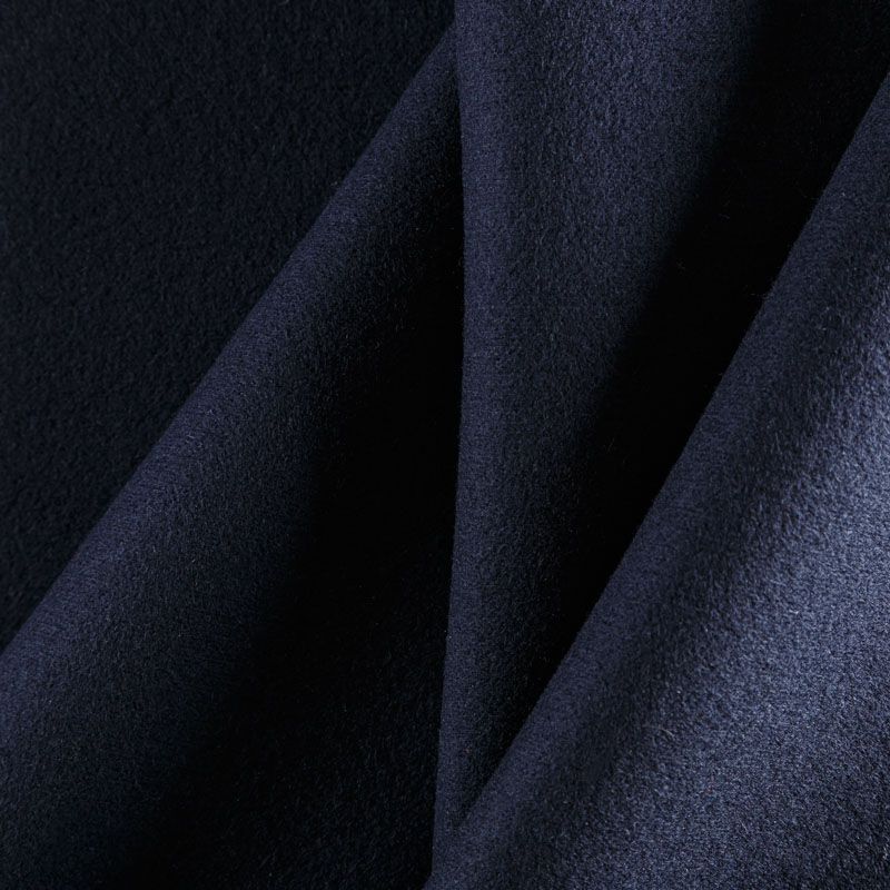 Плотный итальянский шерстяной пальтовый трикотаж темно-синего оттенка. Ткань очень приятная на ощупь, мягкая, пластичная, теплая и уютная. Прекрасно подойдет для  пошива легких пальто, пальто на подкладе, теплых жакетов, курток, кардиганов, юбок или шорт.