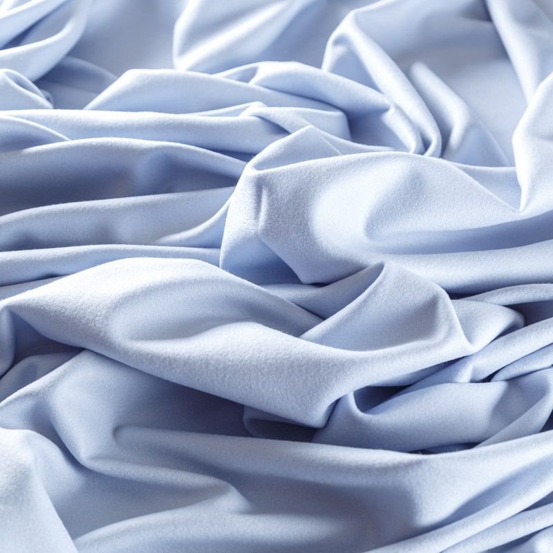 Плотный пальтовый трикотаж голубого оттенка. Ткань очень приятная на ощупь, мягкая, пластичная, теплая и уютная. Прекрасно подойдет для пошива легких пальто, пальто на подкладе, теплых жакетов, курток, кардиганов, бомбера, жилета.