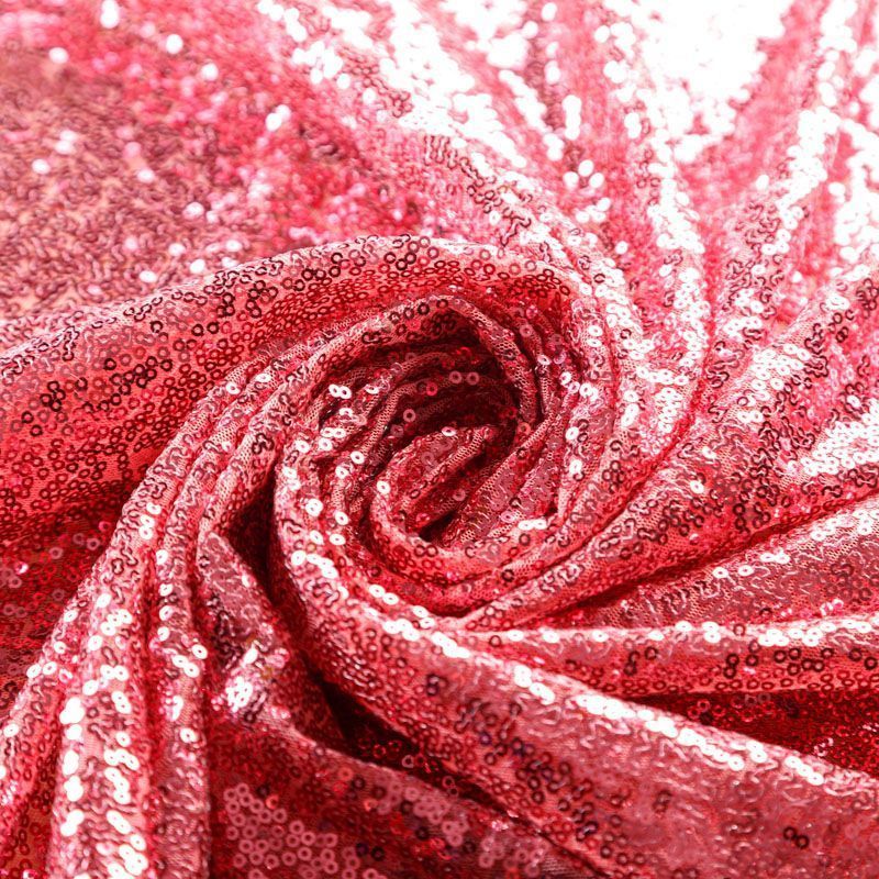 Блестящие пайетки в клубничном оттенке. Мелкие, размером около 3 мм, расположены в хаотичном порядке. Основа - мягкая и эластичная сетка.  Ткань полупрозрачная, может потребоваться подклад. Подойдет для вечернего, коктейльного платья, юбки, нарядных детских изделий, танцевальных и сценических костюмов.