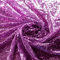 Блестящие пайетки в сиреневом оттенке. Мелкие, размером около 3 мм, расположены в хаотичном порядке. Основа - мягкая и эластичная сетка.  Ткань полупрозрачная, может потребоваться подклад. Подойдет для вечернего, коктейльного платья, юбки, нарядных детских изделий, танцевальных и сценических костюмов.