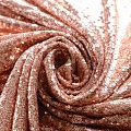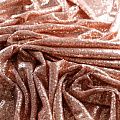 Эластичное трикотажное полотно с люрексовой нитью по всей поверхности хаотично усеяна мелкими глянцевыми пайетками. Ткань очень хорошо драпируется, красиво переливается, имеет глянцевый блеск, пластичная. Пайетки — идеальный материал для праздников и вечеринок. Из них получится эффектное платье, жакет, боди, топ, туника, юбка или комбинезон.