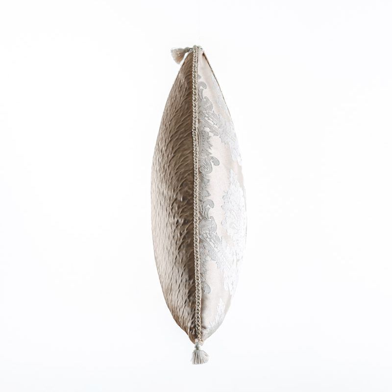 Оригинальная треугольная дизайнерская подушка 55х55х55 см. Выполнена из жаккарда и декорирована кисточками, ажурной тесьмой и витым шнуром. Потайная молния расположена в нижнем шве. Декоративные подушки сделают акцет на цветовой гамме Вашего помещения, подчеркнут особенности интерьерного стиля или тематику оформления. Внутреннее наполнение синтепон в хлопковом чехле.