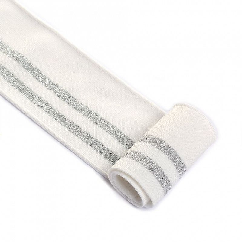 Подвяз трикотажный TBY 6х80 см с серебряными полосами MP19 молочный
