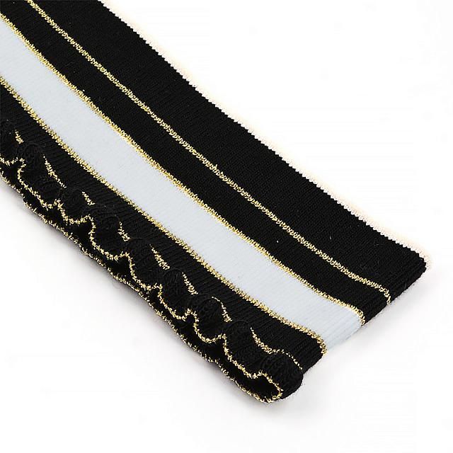 Подвяз трикотажный TBY 6х80 см с золотыми и белой полосами 73038 черный