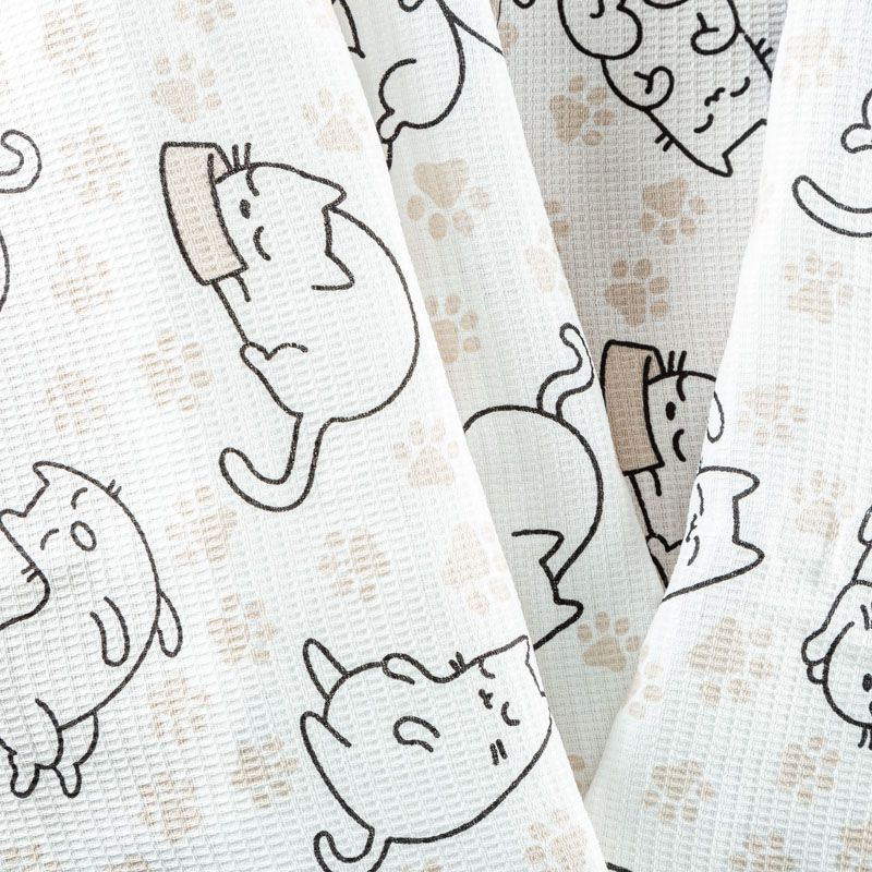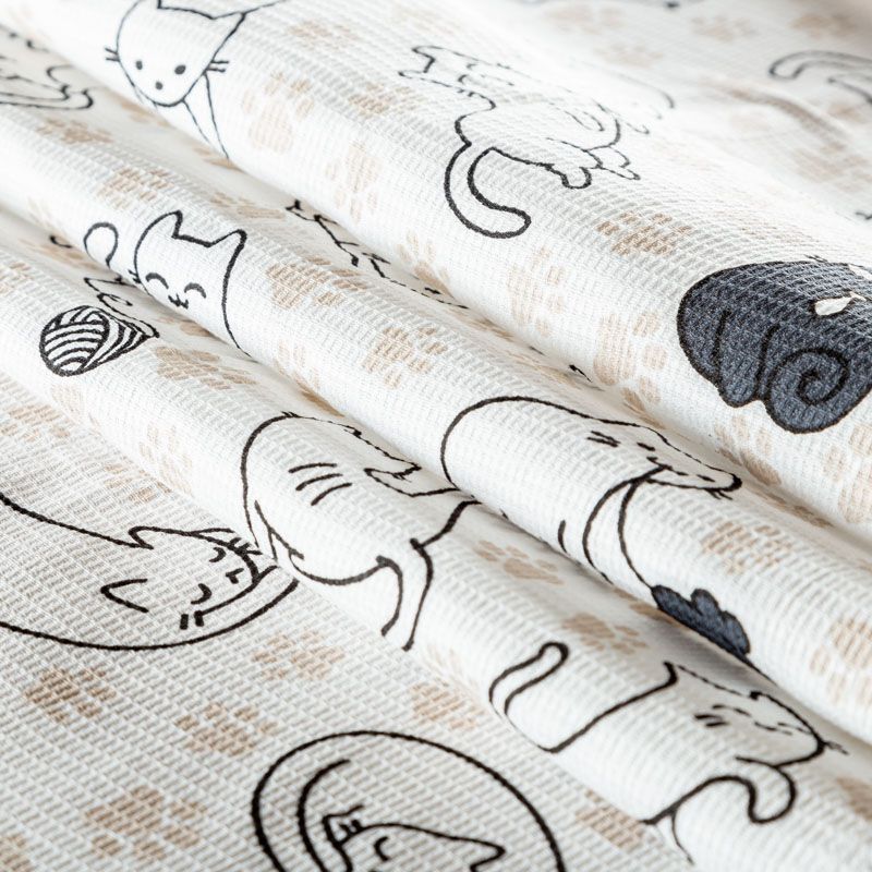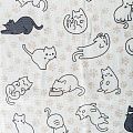 Качественная натуральная хлопчатобумажная ткань, обладающая высокой гигроскопичностью, с милым "кошачьим" принтом. Универсальный материал, из которого шьют кухонные полотенца, скатерти, прихватки, салфетки.