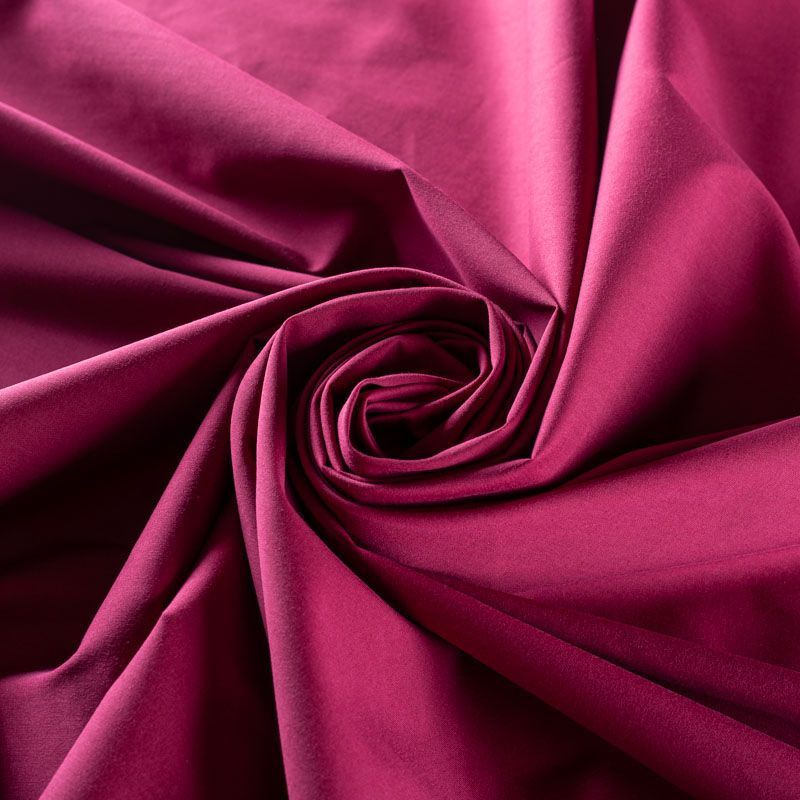 Итальянский плательно-рубашечный хлопок бордового оттенка. Ткань лёгкая, непрозрачная, поверхность матовая, гладкая, приятная к телу, хорошо драпируется, тянется за счет эластана в составе. Прекрасно подойдет блузы, платья-рубашки, летнего сарафана, туники.