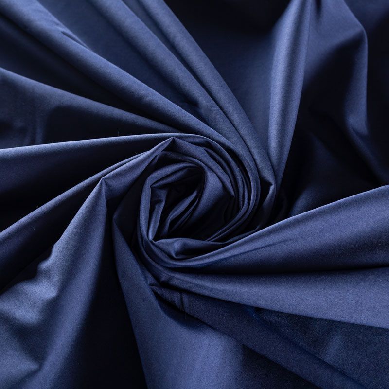 Однотонный плательно-рубашечный хлопковый поплин синего оттенка. Ткань лёгкая, слегка прозрачная, поверхность матовая, гладкая, приятная к телу, хорошо драпируется, тянется за счет эластана в составе. Прекрасно подойдет блузы, платья-рубашки, летнего сарафана, туники.