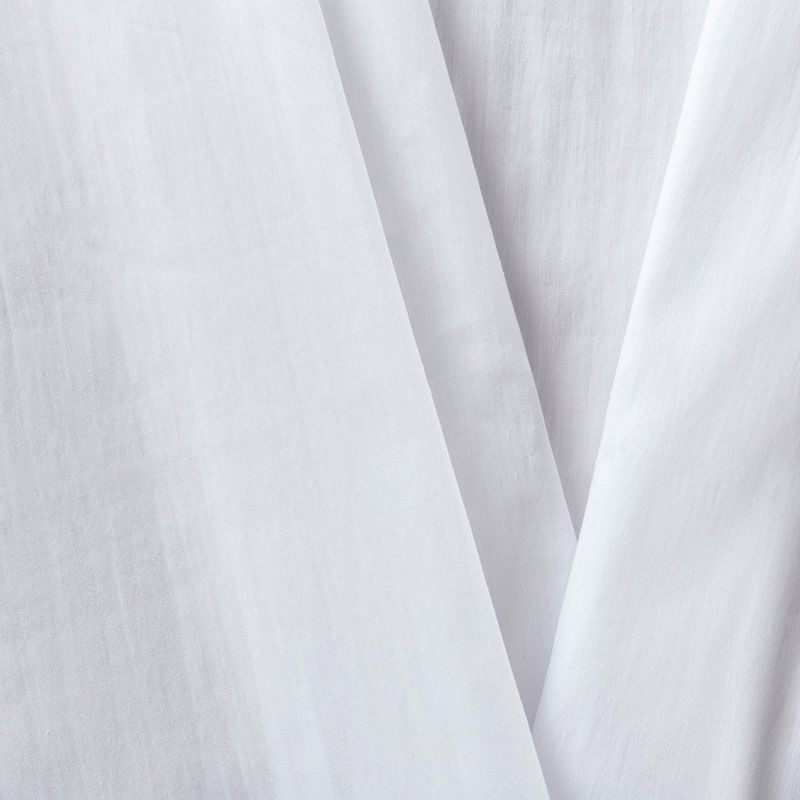 Однотонный плательно-рубашечный хлопковый поплин белого оттенка. Ткань лёгкая, слегка прозрачная, поверхность матовая, гладкая, приятная к телу, хорошо драпируется, тянется за счет эластана в составе. Прекрасно подойдет блузы, платья-рубашки, летнего сарафана, туники.
