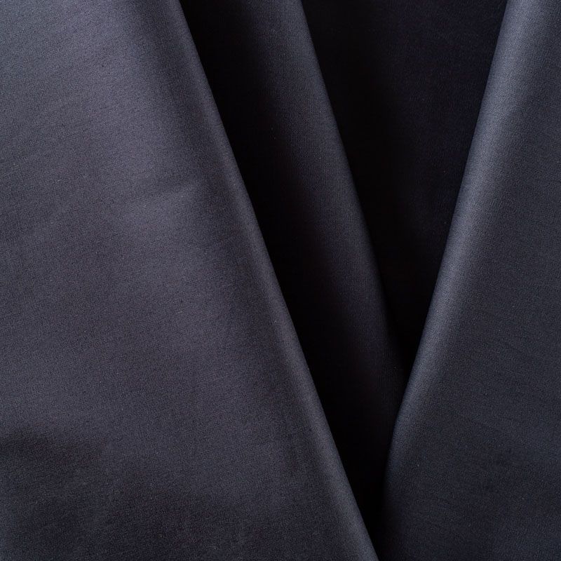 Однотонный плательно-рубашечный хлопковый поплин черного цвета. Ткань лёгкая, слегка прозрачная, поверхность матовая, гладкая, приятная к телу, хорошо драпируется, тянется за счет эластана в составе. Прекрасно подойдет блузы, платья-рубашки, летнего сарафана, туники.
