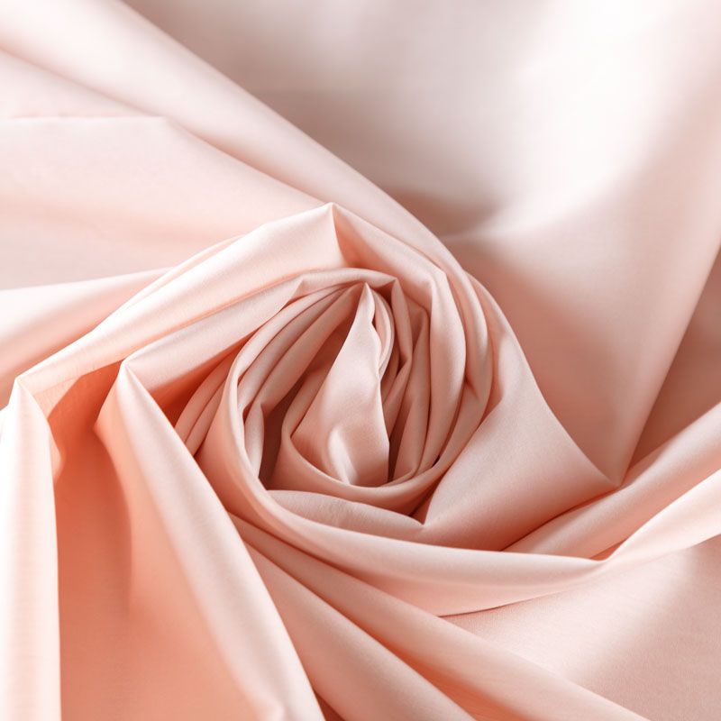 Однотонный плательно-рубашечный смесовый поплин пудрового оттенка. Ткань лёгкая, слегка прозрачная, поверхность матовая, гладкая, приятная к телу, хорошо драпируется, тянется за счет эластана в составе. Прекрасно подойдет блузы, платья-рубашки, летнего сарафана, туники.