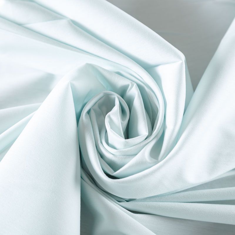 Однотонный гладкокрашенный плательно-рубашечный смесовый поплин. Ткань лёгкая, слегка прозрачная, поверхность матовая, гладкая, приятная к телу, хорошо драпируется, тянется за счет эластана в составе. Прекрасно подойдет блузы, платья-рубашки, летнего сарафана, туники.