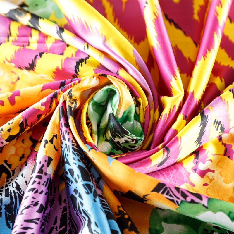 Итальянский плательно-рубашечный хлопок сатинового плетения крупным ярким принтом. Ткань лёгкая, непрозрачная, поверхность матовая, гладкая, приятная к телу, хорошо драпируется. Прекрасно подойдет блузы, платья-рубашки, летнего сарафана, туники, домашней одежды.