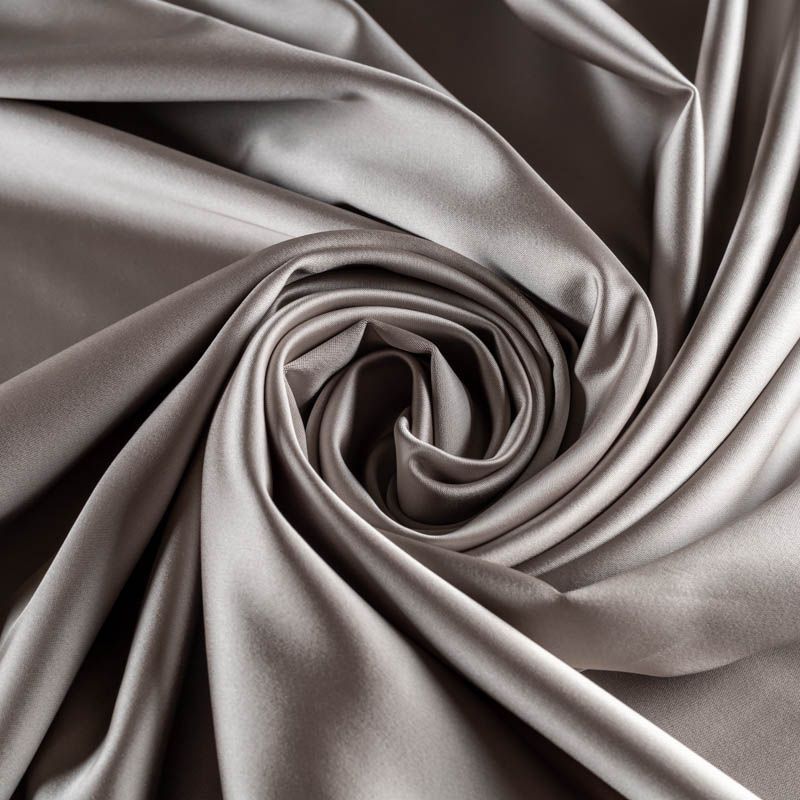 Ткань средней плотности, хорошо тянется, пластичная, отлично драпируется, держит форму, верхняя поверхность имеет благородный сатиновый блеск. Роскошный сатин идеален для пошива нарядных и повседневных платьев, костюмов, брюк, юбок, бомберов.