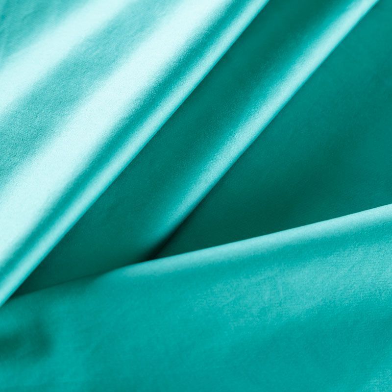 Коттон средней плотности зеленого оттенка, мягкий, приятный на ощупь, эластичный, держит форму, смотрится красиво. Имеет сатиновый лоск и плетение. Подойдет для пошива костюма, жакета, юбки, платья и других изделий на теплый и прохладный сезоны.