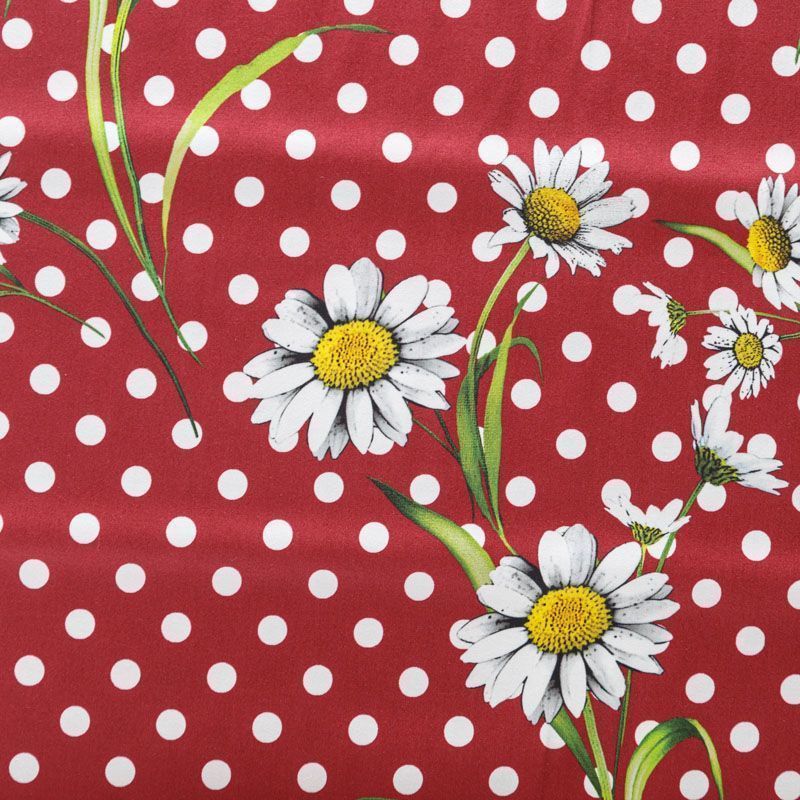 Итальянский сатин-коттон бордового цвета с крупным цветочным принтом. Поверхность гладкая со сдержанным блеском, ткань средней плотности, не толстая, хорошо держит форму, тянется за счет эластана в составе. Подойдет для пошива костюма, жакета, юбки, платья, брюк или шорт.