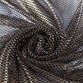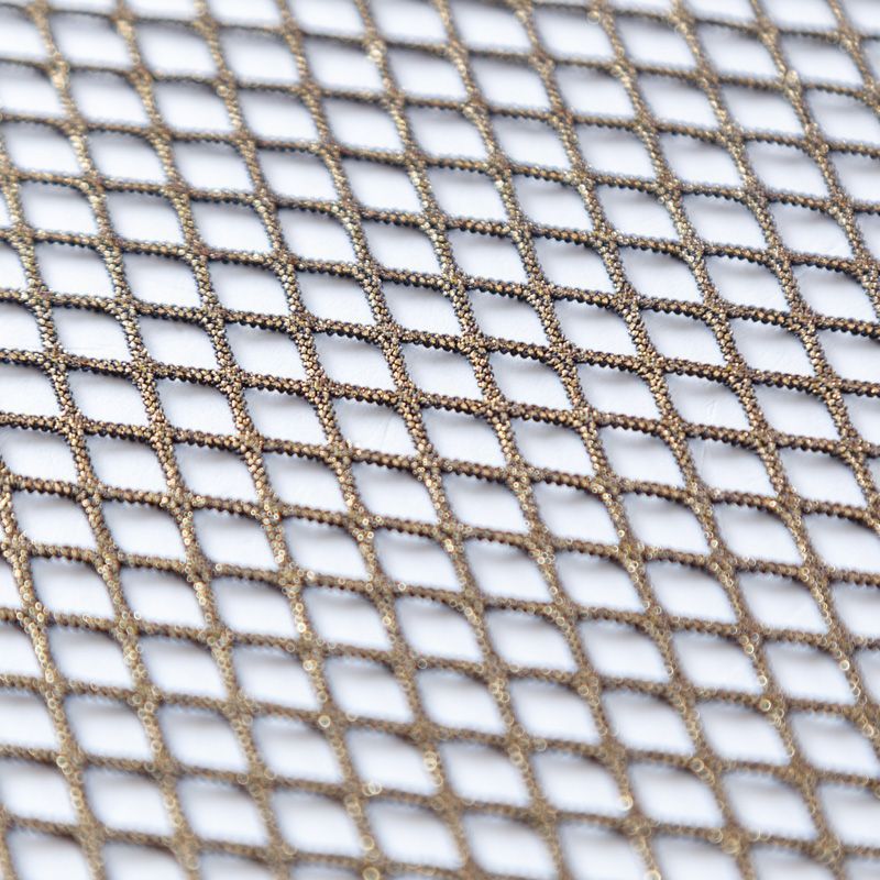 Рельефный полупрозрачный материал с сетчатой структурой. Поверхность полотна с металлизированным золотым напылением, которое придает материалу легкий блеск и мерцание. Полотно мягкое, растяжимое во всех направлениях. Сетки нашли свое применение в процессе пошива и последующего декора вечерних нарядов, свадебных платьев, спортивной одежды, театральных костюмов.