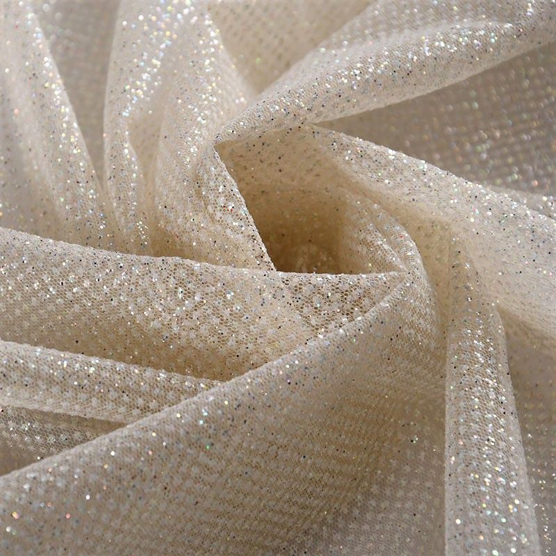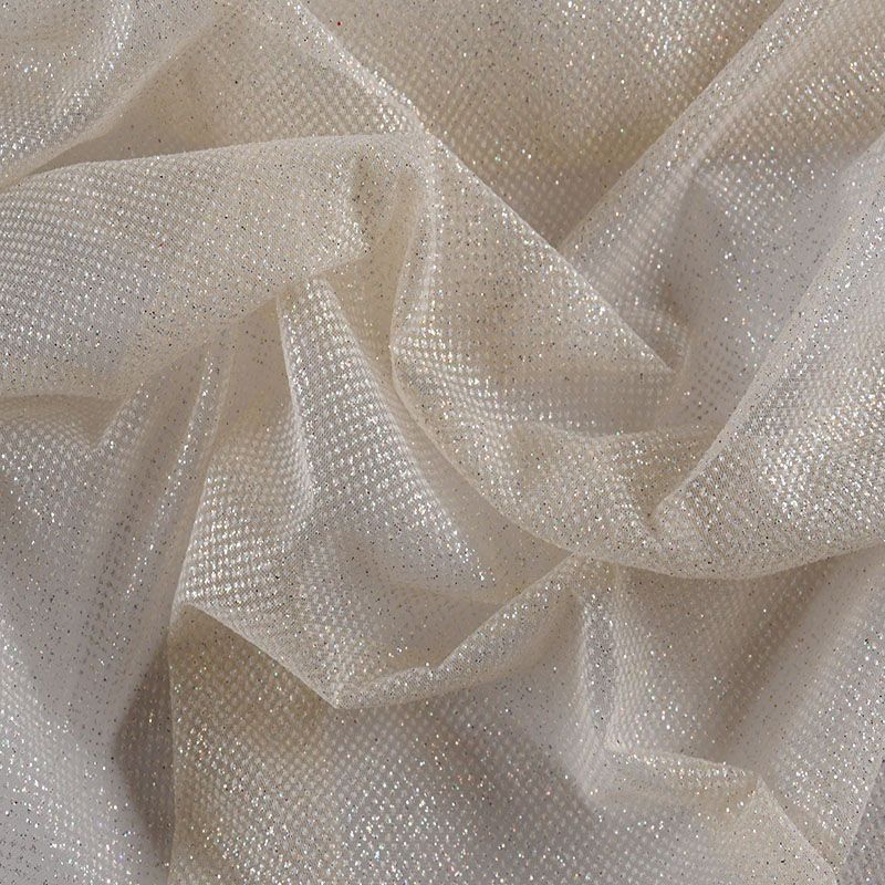 Рельефный прозрачный материал с сетчатой структурой. Поверхность полотна с металлизорованным глиттером, который придает материалу блеск и мерцание. Полотно жесткое, не тянется, отлично держит форму. Сетки нашли свое применение в процессе пошива и последующего декора вечерних нарядов, свадебных платьев, спортивной одежды, театральных костюмов.