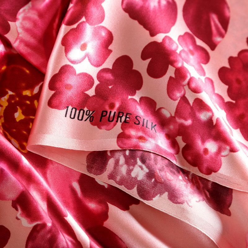 Итальянский атласный шелк с цветочным принтом на розовом фоне. Ткань тонкая, не просвечивает, отлично драпируется, легкая и струящаяся. Идеально подойдет для пошива платьев и сарафанов расклешенных моделей, с воланами, летящих юбок, топов, блузки, костюма в пижамном стиле.