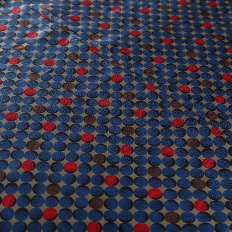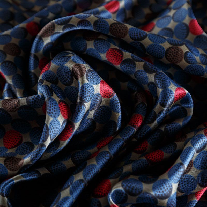 Итальянский атласный шелк с геометрическим принтом на фоне цвета хаки. Ткань тонкая, не просвечивает, отлично драпируется, легкая и струящаяся. Идеально подойдет для пошива платьев и сарафанов расклешенных моделей, с воланами, летящих юбок, топов, блузки, костюма в пижамном стиле.