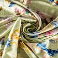 Шелк натуральный К06-0059 светло-салатовый принтованный в Петрозаводске