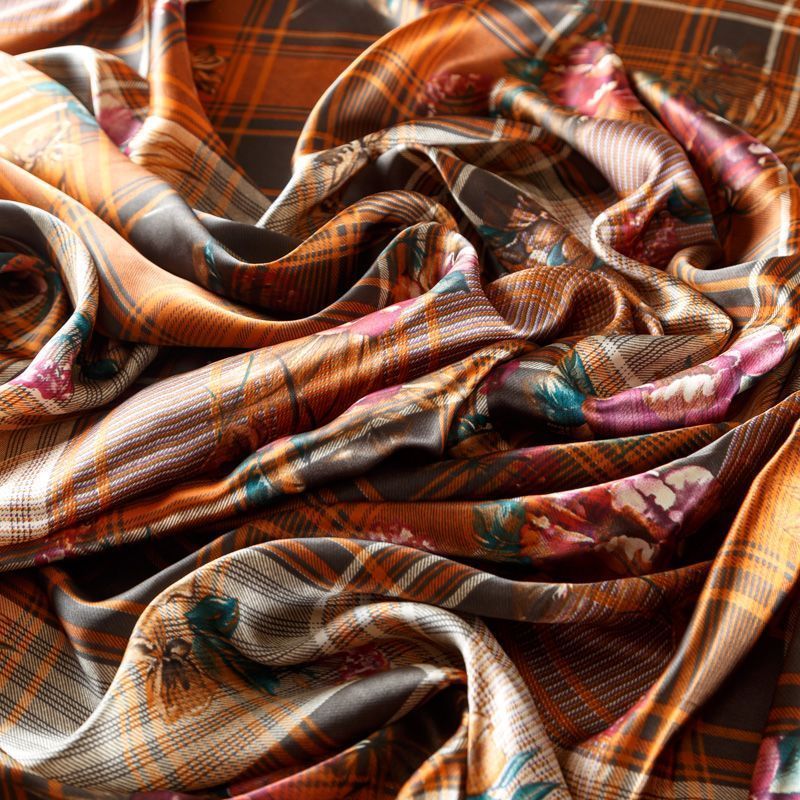 Шелк натуральный К156-78 рыже-коричневый принтованный в Петрозаводске