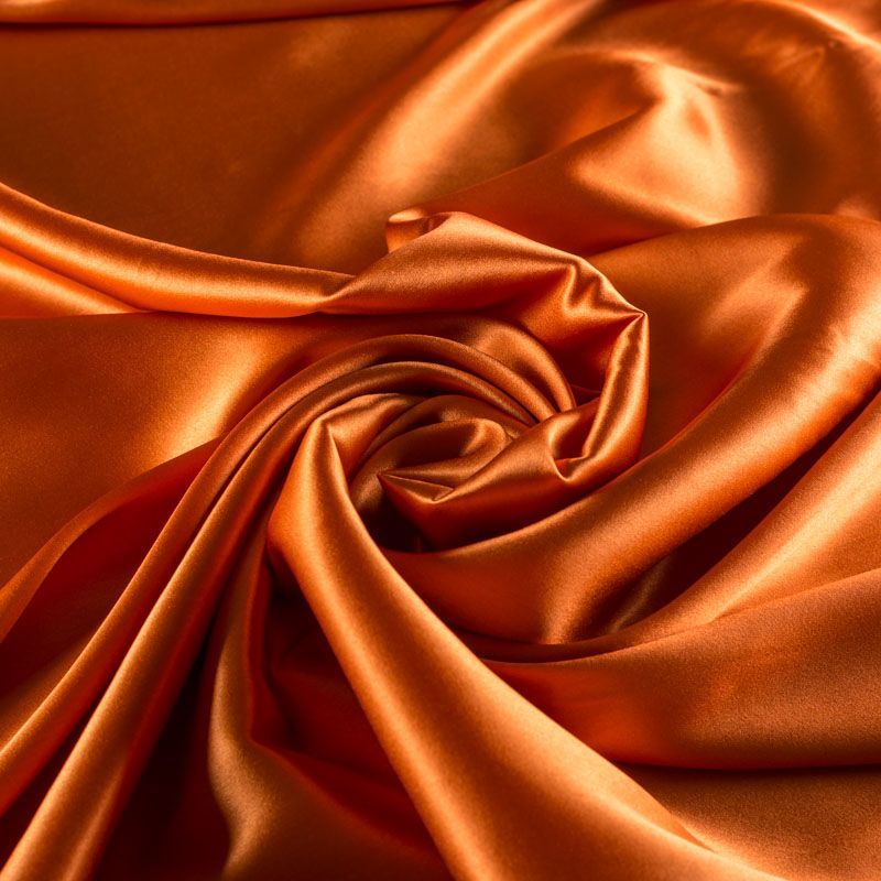 Блузочно-плательный атласный шелк с эластаном оттенка жженого апельсина. Невесомая гладкая ткань приятно прилегает к телу, дарит ощущение прохлады и нежно струится. Небольшой процент эластана делает материал упругим и растяжимым. Ткань не просвечивает, идеально подойдет для платья, блузки, рубашки, шелкового топа, юбки, актуальна для пижамы и комбинации.