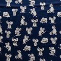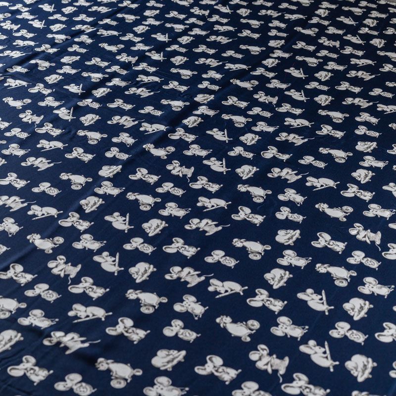 Итальянский матовый шелк темно-синего оттенка с узнаваемым игривым принтом от известного бренда. Ткань тонкая, не просвечивается, отлично драпируется, легкая и струящаяся, тянется за счет эластана в составе, лицевая сторона креповая, изнанка - атласная. Идеально подойдет для пошива платьев и сарафанов расклешенных моделей, с воланами, рюшами, летящих юбок, топов, блузки, рубашки, костюма в пижамном стиле.