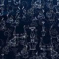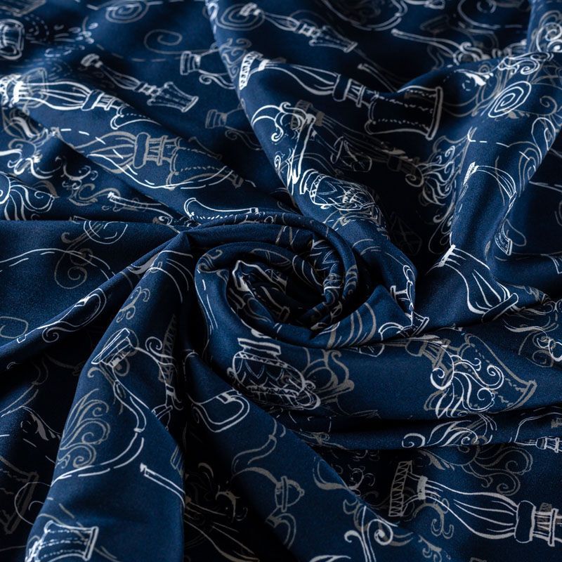 Шелк натуральный К15-318 темно-синий принтованный